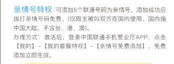 然后就是可以绑定五个联通亲情号码,添加后拨打亲情号码免费,无论是通话还是流量都能满足到位。