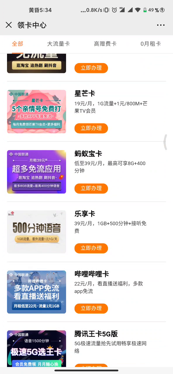 当然,这个是联通官方渠道,还有很多针对不同应用,不同人群的手机卡,大家可以去逛一下。
